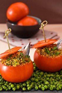 Un clásico, los TOMATES RELLENOS. Pueden tener una base de arroz integral, de quinoa, de mijo, del cereal que más nos guste y verduritas picadas y condimento al gusto. Para hacerlo más proteico podemos añadir queso, aceitunas, etc…