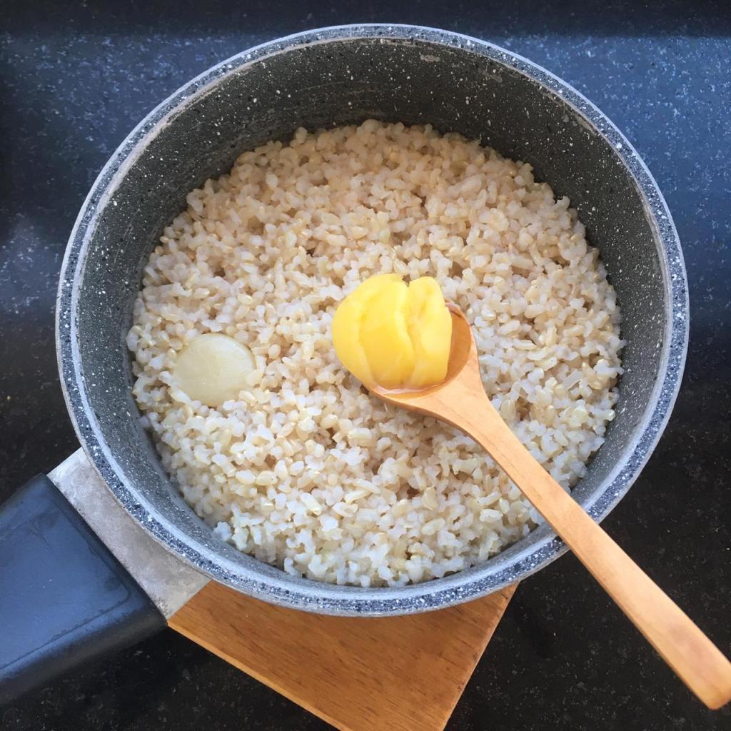 - GACHAS DE AVENA ó PORRIDGE. Como sea que cocines la avena de forma habitual, añádele ghee al agua de cocción, verás la diferencia. También funciona bien con los panqueques de avena.