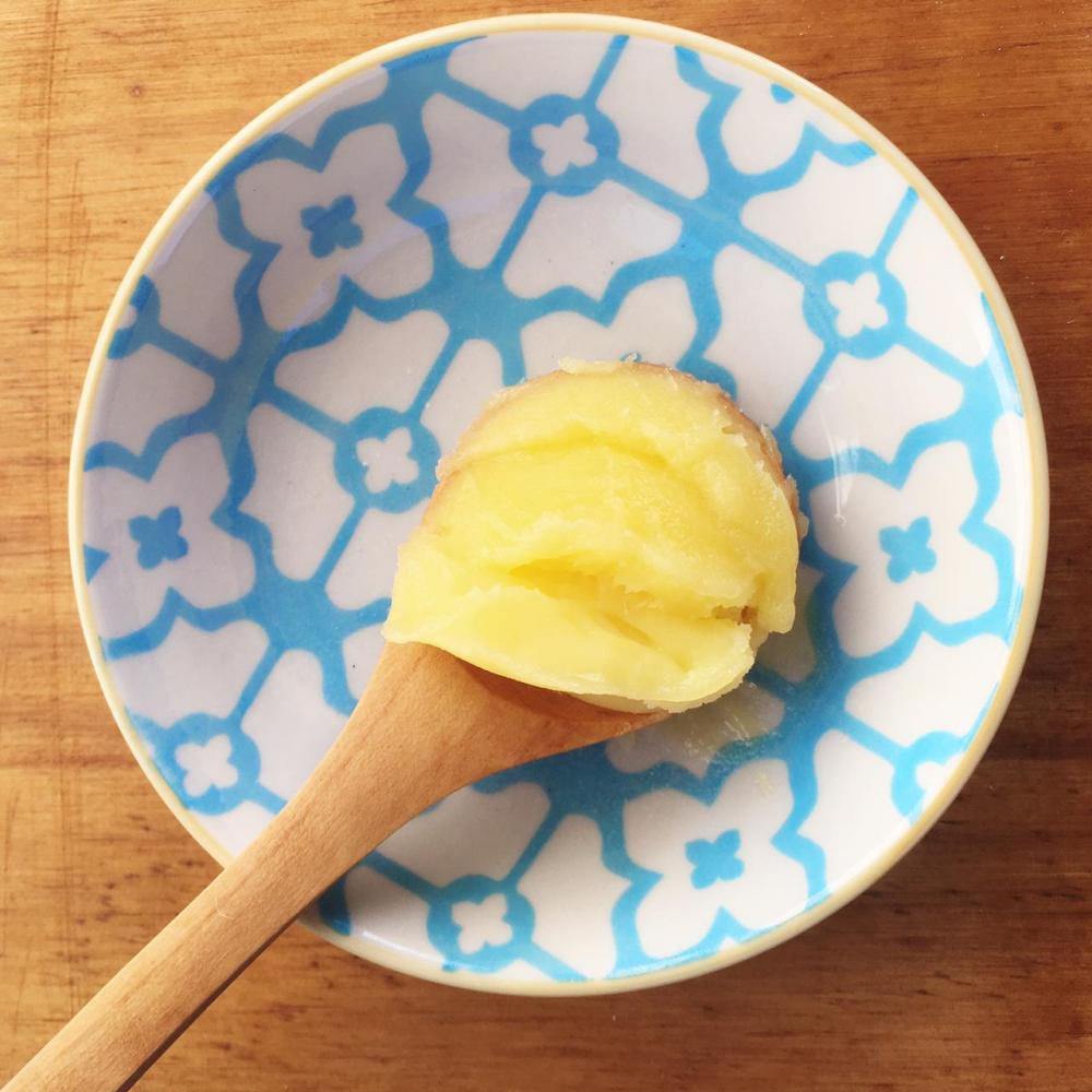 ¿Qué es Ghee? Mantequilla clarificada. Cuando se hierve la mantequilla, se «queman» las proteínas y los sólidos lácteos. Es un alimento básico en la cocina tradicional india y la medicina ayurvédica, además de ser rico en grasas beneficiosas para la salud. Es muy fácil de hacer en casa (puedes ver cómo se hace AQUÍ ),