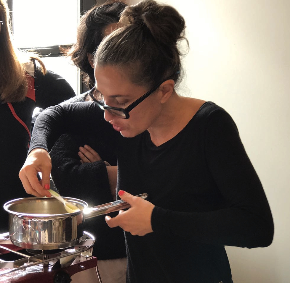 El formato es muy sencillo, previamente charlamos sobre lo que te gustaría aprender, definimos las recetas, hacemos la “lista de la compra” y agendamos una fecha y horario en la que tu cocina esté disponible para disfrutar de ella.